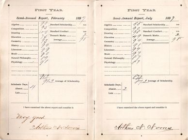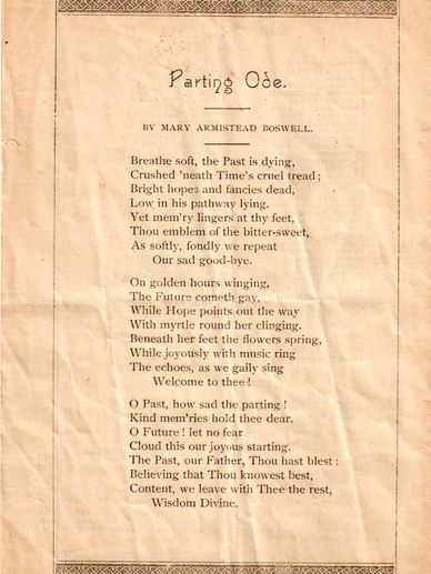 Original memorabilia in this section was donated by a descendant of Daisy (Norris) Kriel, Class of 1889.